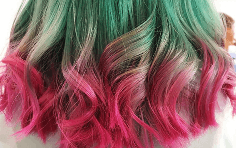 Popping up all over our Instagram feeds (because that’s where we source all of our beauty inspo these days), beauty bloggers and hair color fanatics alike have been dyeing their hair to resemble the picnic snack staple. The trend involves—you guessed it—coloring your tresses shades of green and pink to achieve an ombre effect. While you may think the two hair colors would clash, they actually look quite nice against each other. See below: