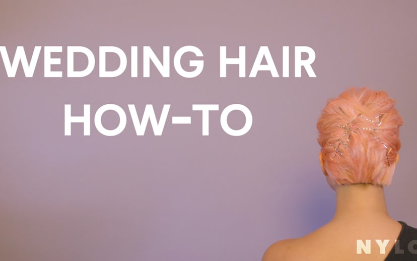 Styling assistant editor Jenna Igneri's short pink locks, LaFond emphasized the importance of using products with hold. "A good hairspray goes a long way," she says. "Brides can dance the night away and not have to worry about keeping every hair in place." She also stresses the importance of using actual bobby pins—especially for the style she created for Igneri. "One of the biggest mistakes I see when people style their own updo is using the wrong pins—this can make for an updo that looks homemade and falls out before the ceremony," she says, further explaining: