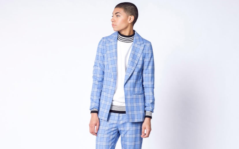 Known widely through social media, Wildfang has outdone itself with these styles, which feature funky marble prints, poppy plaids, and classic black suiting staples in traditional cuts. In discussing the reason for this power move, creative director of Wildfang, Taralyn Thuot, says that she firmly believes that women of all shapes and sizes should have the option of rocking a suit and experience the confidence that a good fit can bring. "We felt it critical to offer sizes 2-20 in our first-ever line of size-inclusive Wildfang suits. And to put our money where our mouth is, we fit and photographed the suit on a range of women of different shapes and sizes. We want women to feel empowered to suit up," she said.