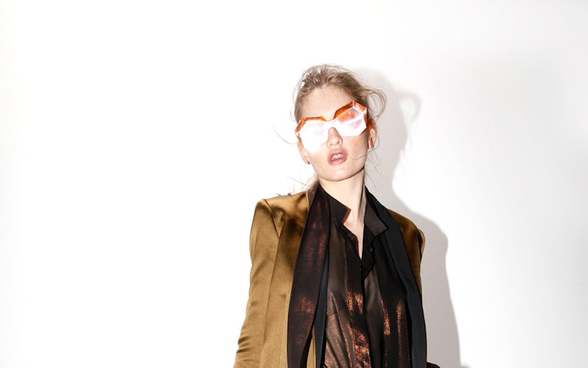 Layer it under a long black menswear coat and pair with leather jeans now. Later you can toss it over a mesh tank and high waisted shorts.