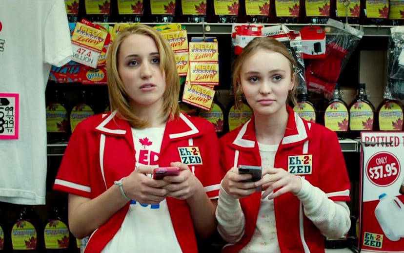 In the film, a follow-up to last year'sTuskand part of Smith's so-called Truth North trilogy, Depp and her co-star Harley Quinn Smith (the director's daughter) play two yoga-obsessed teenagers on their way to a senior party. But shit gets cray when an ancient evil emerges from under the convenience store where they're working. It's up to them — and a ghostbusters-type figure named Guy Lapointe (played by Johnny Depp) — to save humanity before the big bash.