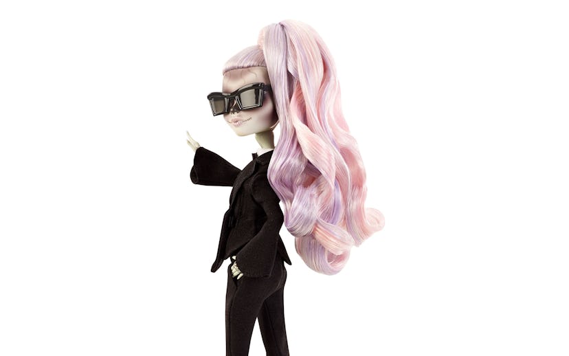 Inspired by the look in the Lady Gaga “Born This Way” video, Natali styled the miniature ghoul to look like a replica of the tuxedo-donning superstar. “It’s really just been a poetic experience for me,” Natali tells us about working with Mattel and her family at the Born This Way Foundation (her mom Cynthia Germanotta co-founded it), which aims to support the wellness of young people and empower them to create a kinder and braver world. She captured the look to a T with a sleek wide-leg pantsuit, high ponytail, tattoos, and even skeletal facial features mimicking the ones seen in the video.