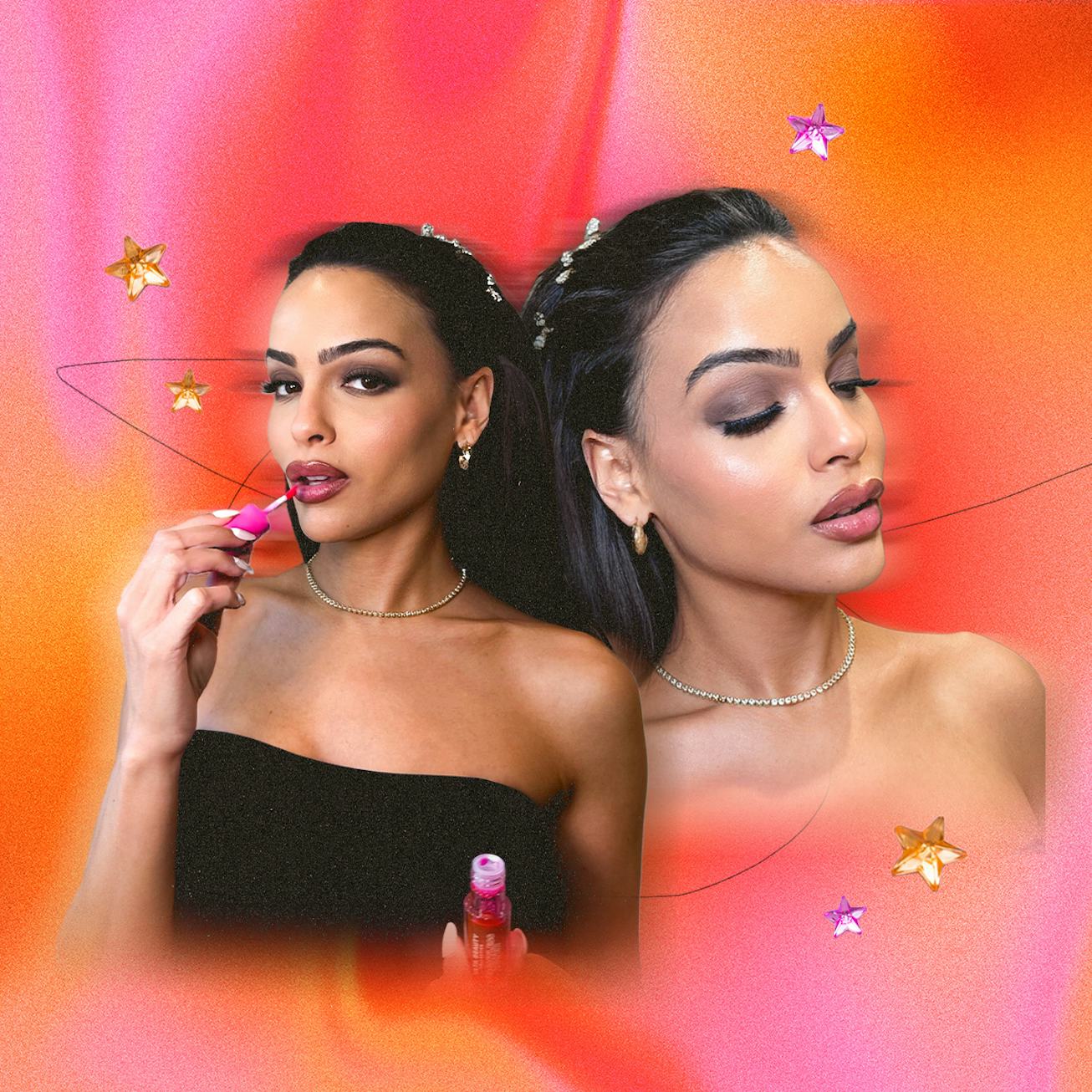Festival lips can be a lot to manage, but Ramos has a go-to trick that keeps her grunge-inspired glam vibe looking fresh without constant reapplications. “A good lip stain is crucial for all-day wear,” she says. “I always start by exfoliating my lips. This helps prevent peeling, which can mess with how the stain wears. Then I moisturize and let it fully dry before going in with the stain.” Once that’s set, she applies the pink stain all over, follows it up with a brown liner, and smudges it out for a cool, lived-in vibe. “Super easy — and it lasts,” she says.