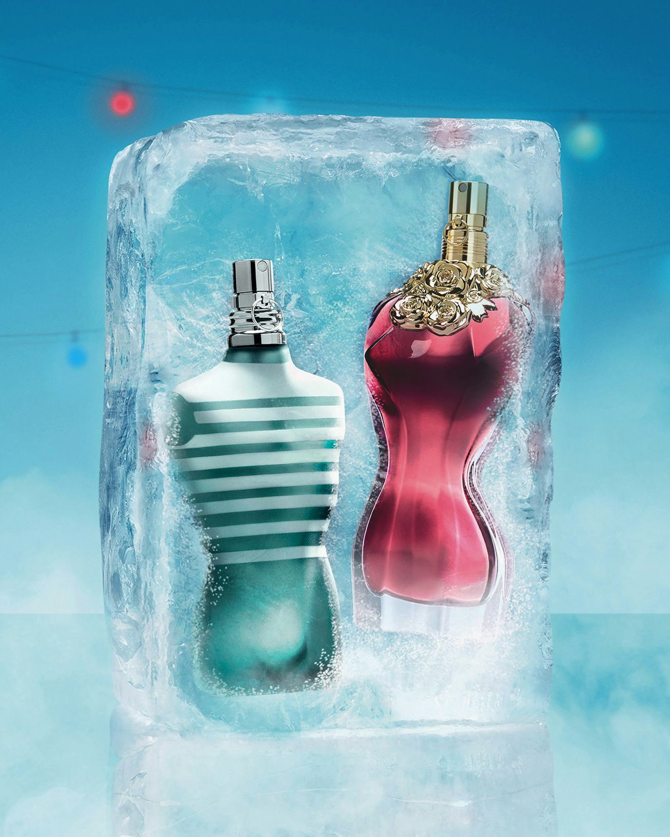 Base notes can last on your body for hours, but top notes usually fade away after the first 20 minutes. If the freshness of those fleeting notes is what you crave through the day, a handy travel spray is your answer. You can find them in the limited-edition holiday sets both Le Male and La Belle come with this season.