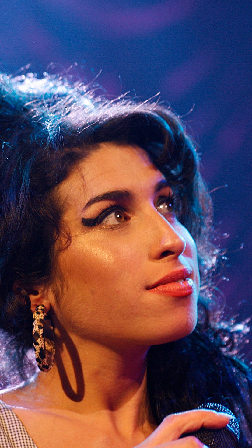 Captured in this photograph before her massive rise to fame, Winehouse wore her hair down, and she wore little in the way of makeup.