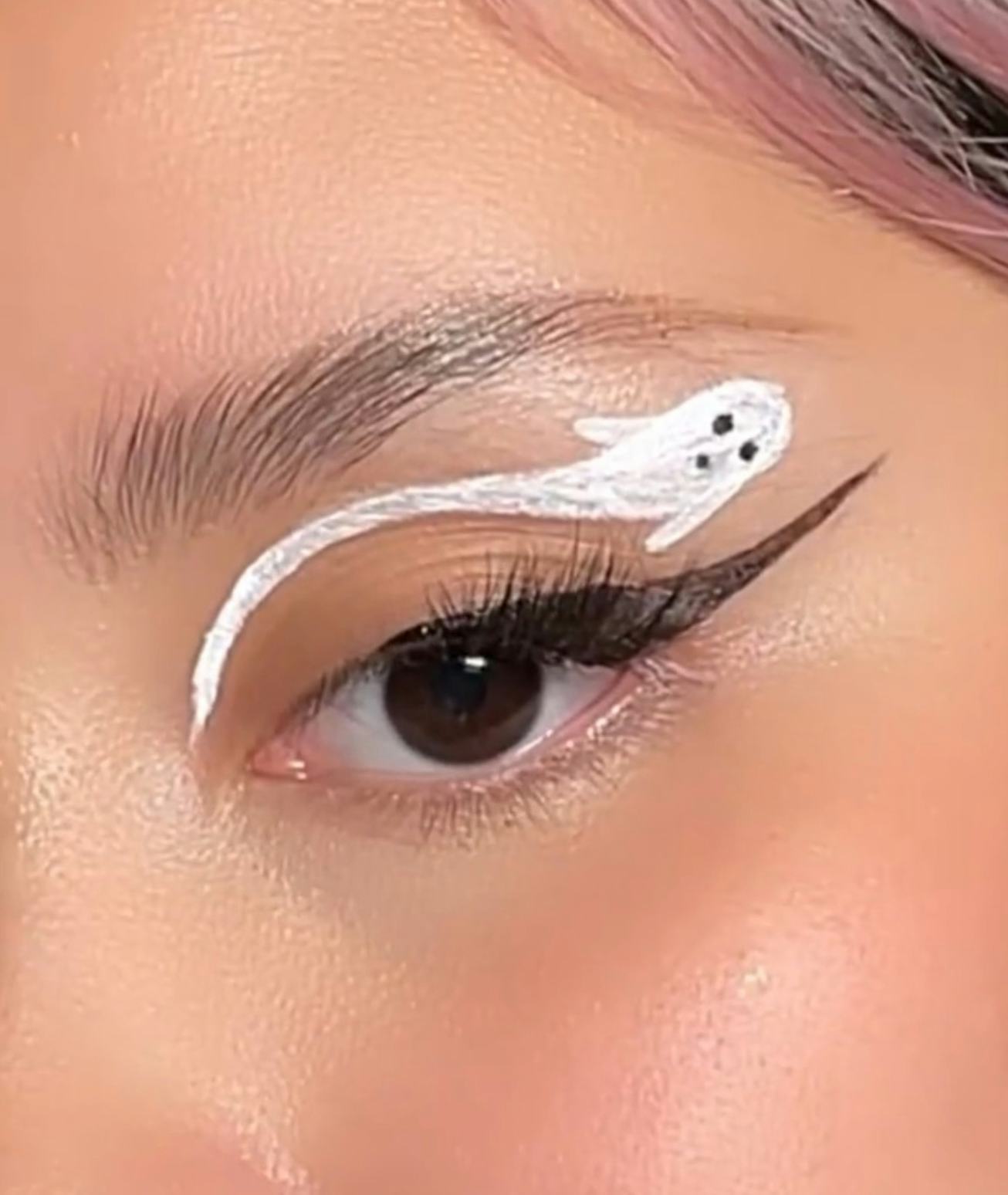 These ghosts look cute and friendly, so this isn’t exactly spooky, but painting ghosts on your face is a sure-fire way to look like you’re participating in the festivities. What’s more Halloween-themed than a ghost, after all?