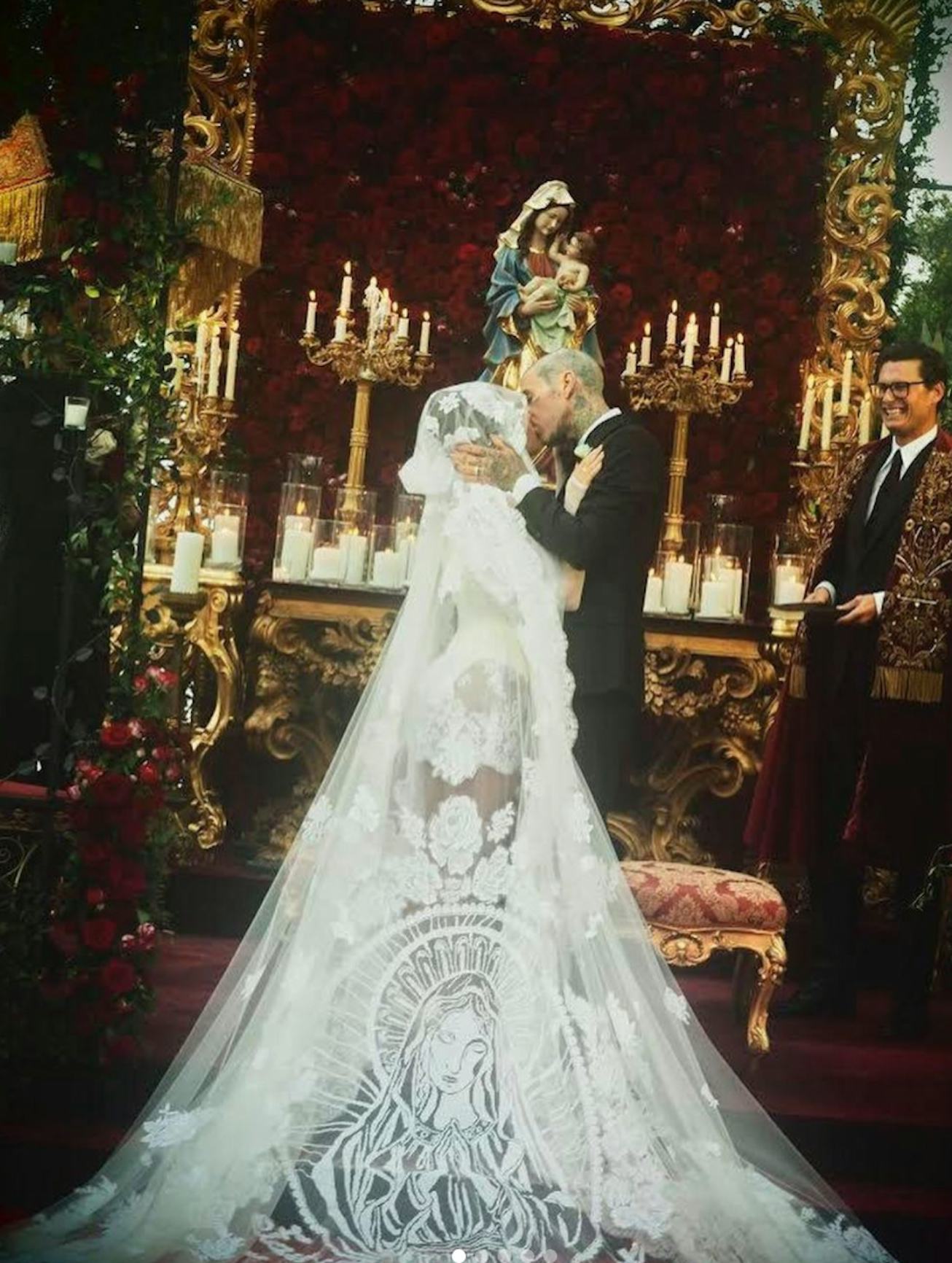 At NYLON we always keep a keen eye out for the resurgence of goth and punk trends—we’ve seen their influences pop up time and again in fashion, beauty, and music. However, one place that seemed more resistant to taking a turn on the dark side was the bridal industry. Although an old fashioned idea, the color black was long considered taboo to even wear to a wedding as a guest—let alone for a bride. But as of recent, the interest in goth weddings has been on the rise. This year in particular Kourtney Kardashian and Travis Barker reignited a new curiosity in unconventional wedding aesthetics with their darkly romantic themed engagement, photoshoots, and two “practice” weddings leading up to their goth glam May 22, 2022 nuptials in Italy.