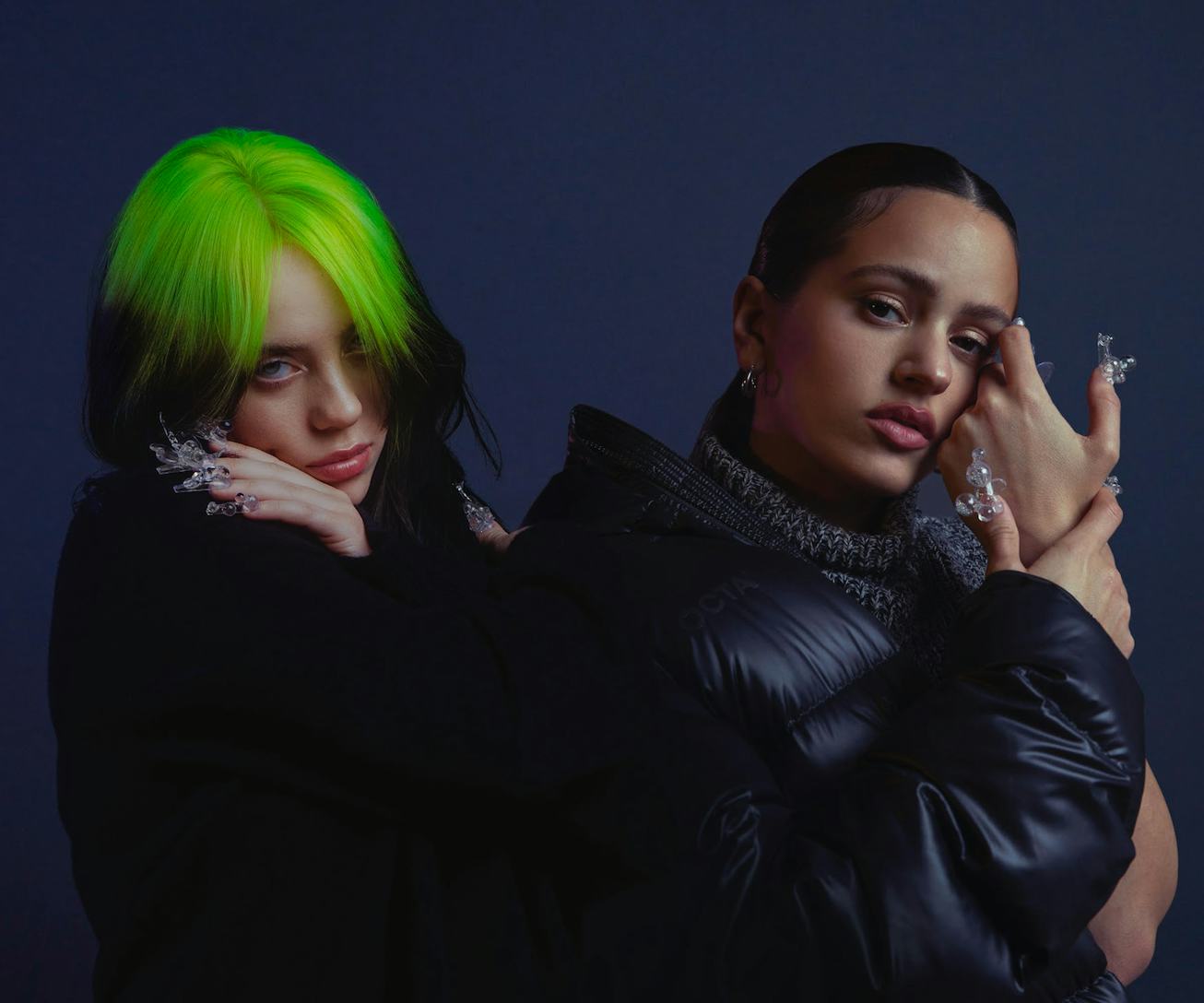 See Rosalía and Billie Eilish’s Matching Glass Manicures Inspired By Frozen Rain