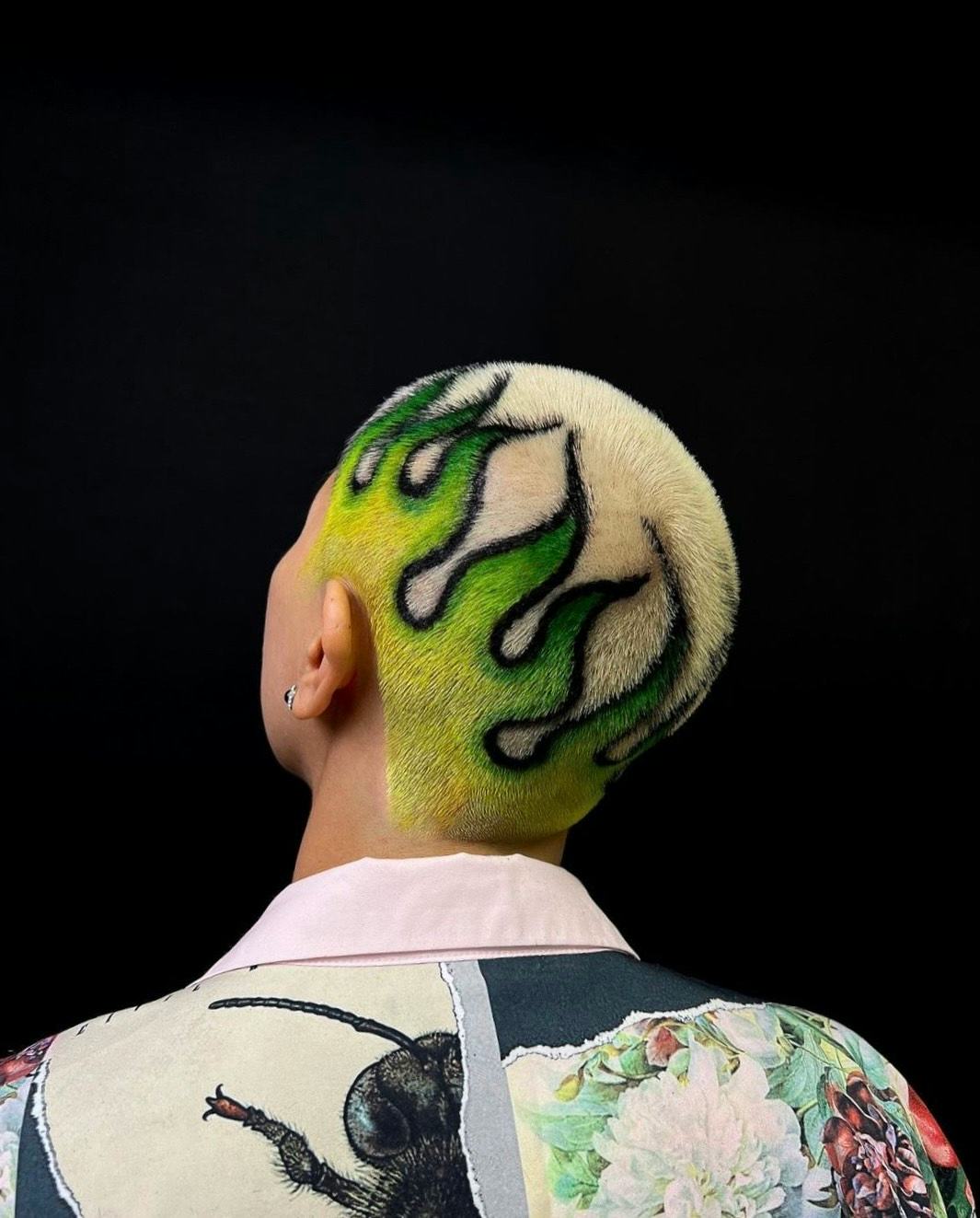 While Lily’s New Year’s buzz cut felt like a necessary step in her grieving process, she still dreaded the thought of growing it out. Luckily she found out, “it wasn’t so bad,” she says. “I liked some of the hairstyles that I played with when it was growing.” She took the grow-out stages as an opportunity to bleach her hair and add green flames, shave patterns into her hair, and even dye it ombre blue. Lily says the process helped her to be more self-confident. It’s a reminder: “It's not forever,” Lily says. Hair grows and time passes. Being able to let go of your hair is a visual sign of being open to change. “Everybody should experience [shaving your head] at some point in their lives — at least once.”