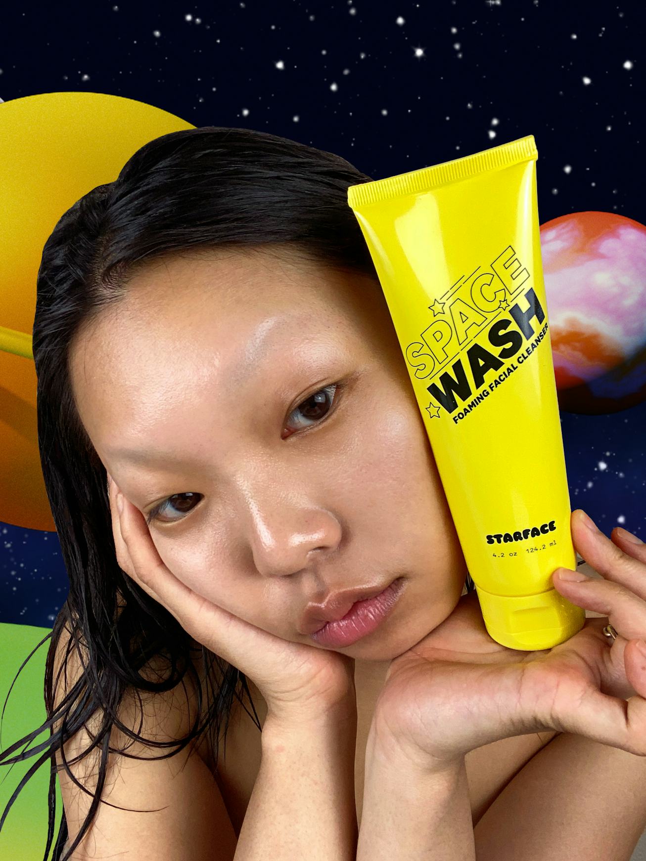 Check out campaign images of the cleanser in action, below, and shop Space Wash ($16) online directly from Starface.