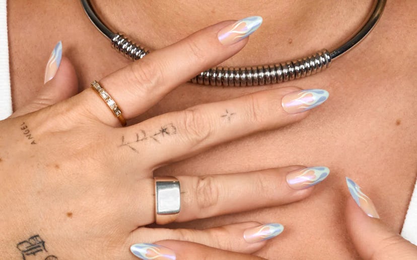 Nail artist Brittney Boyce says this Y2K-flame-design twist on a French manicure is going to be huge this summer. “It’s cool, but it’s not so out-there that people are intimidated to try it,” she says. Stick to classic French manicure-compatible white and pastel shades for a subtle look or go bold with bright colors and metallics for a more punk vibe.