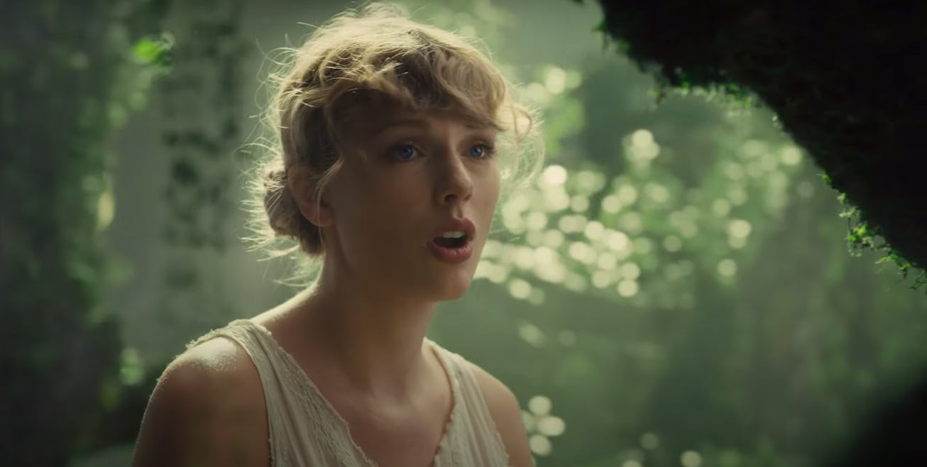 The video sees Swift in a mythical forest common in traditional folklore, offering a closer look at the ethereal beauty she created herself. While her makeup was fairly simple — brushed up brows and rosy, popsicle-stained lips — her hair remained in two loose, surprisingly intricate braided buns sitting at the nape of her neck, with wispy bangs falling over her brows and ears.