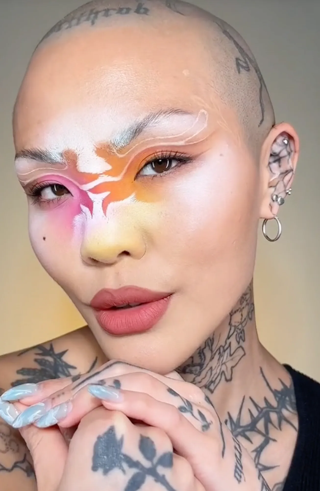 The idea was sparked online by makeup artist Mei Pang. Posting a TikTok video (that now has over 10 million views) on her account earlier this month, Mei said she was “experimenting with my nose crinkles”. “Don’t ask me why I did this - I think I’m having artist block,” she wrote in the caption. Mei first added pink, orange, and yellow eyeshadow pigments to her nose bridge, then scrunched her nose while applying white loose powder on top. Some people in the comments have compared the final result to “cat's facial markings” or “tiger face paints”. Creative channels, unblocked.