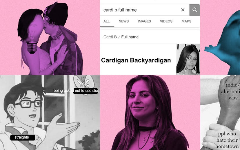 Have you ever wondered what 50 Cent is short for? Or, maybe Machine Gun Kelly? Well, if you were on the internet this summer, you probably confused yourself for a bit. For whatever reason (the internet never needs a reason), people Photoshopped fake Google results for celebrities "real" names. Like, Icelandic Cubicle (Ice Cube), Ludacrisscrossapplesauce (Ludacris), and our personal favorite, Cardigan Backyardigan (Cardi B).