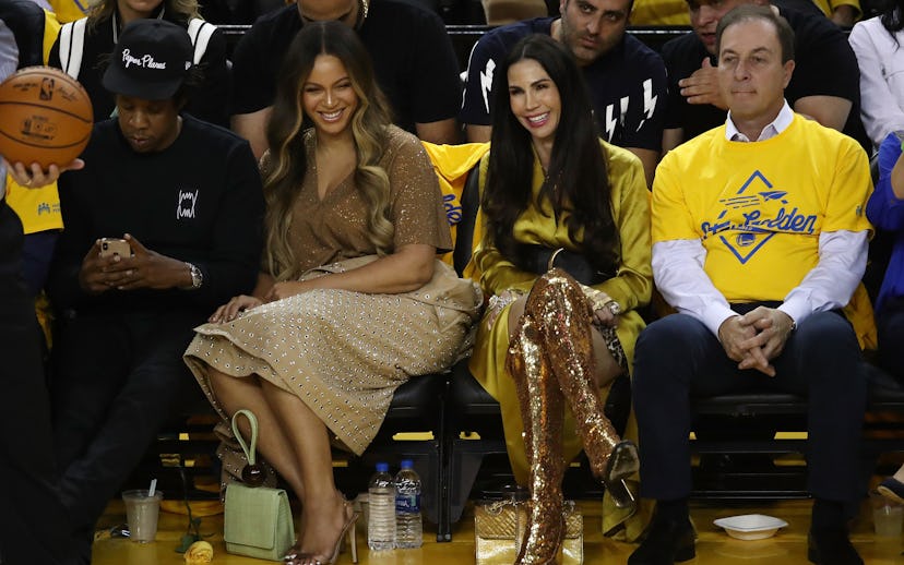 You've probably heard by now that Beyoncé and Jay Z were courtside during last night's NBA Finals game between the Toronto Raptors and the Golden State Warriors. Next to them sat Nicole Lacob, the wife of Warriors owner Joe Lacob, who at one point leaned over Beyoncé to speak to Jay. Whatever their conversation was, it didn't involve Beyoncé so she sat there hilariously expressionless after greeting someone across the court and then slightly nudged Lacob while adjusting in her seat.