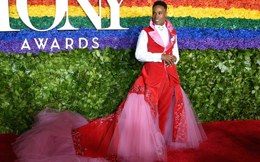 Billy Porter never disappoints when he steps onto a red carpet, and his Tony Awards look is no exception. The Posestar donned a "gender-fluid evening suit," per The Hollywood Reporter, that incorporated the stage curtain from Kinky Boots—which he won the Tony Award for Best Actor for back in 2013—and a uterus motif.