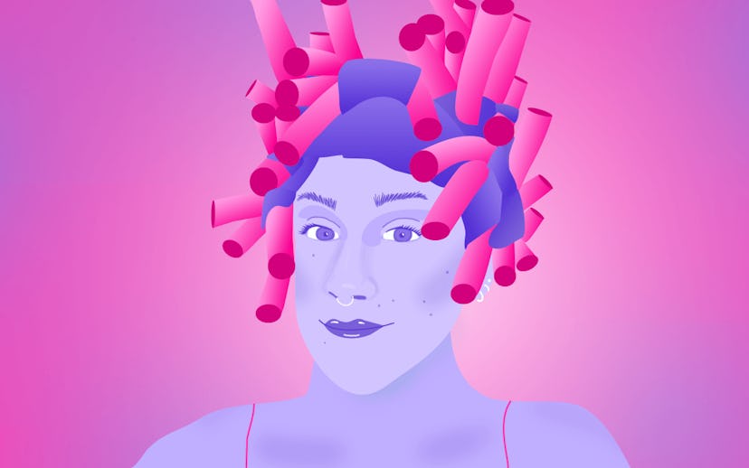After letting the perm lotion sit in the hair for 15 or so minutes, it was then slowly rinsed out while the curlers were left untouched. From there, a neutralizer— a combination of hydrogen and oxygen—was applied to the hair, again, with curlers still intact. This rejoins the bonds, and since my hair was in curlers when applied, these bonds were rejoined in a curve. "Basically, you're taking the structure out of the hair, and then putting it back together," says Adams. "It's the same as a keratin treatment, except you're doing the opposite. The size of the roller will determine the size of the curl, as well as the technique you use to wrap."