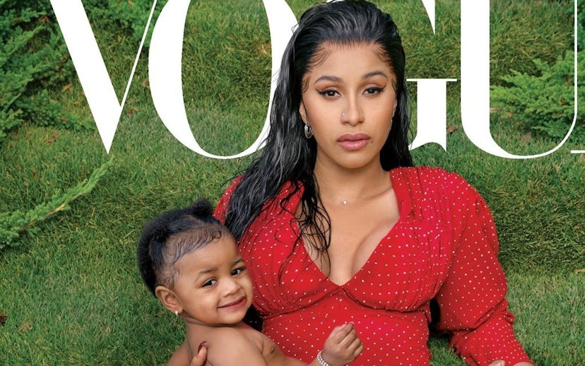 The Annie Leibowitz-helmed photos show Cardi B and her daughter, Kulture, at home, as the cover story focuses on the rapper balancing motherhood with the stresses of fame, as well as her imminent next album. ""Being a mom—how can I say it? Things are a little bit harder to balance, but it's good for the mental," Cardi B tells Vogue. "Like, if I'm playing with my daughter, I forget about the issues."
