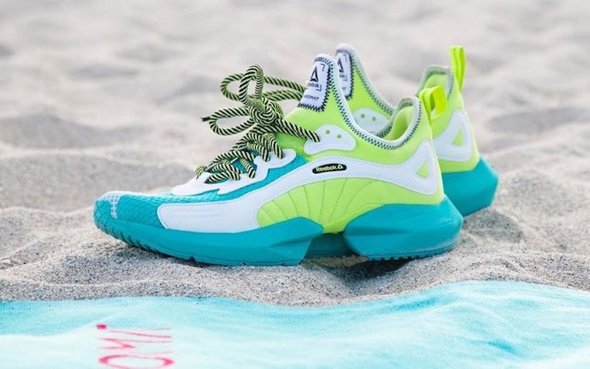 The clunky beauties are not only gorgeous but also pretty functional. Made of a breathable and lightweight mesh upper, they make for a fashionable summer sneaker; Reebok's cushion and midsole design and materials, though, allow for flexibility, stabilization, and comfort when it comes to performance. The sneakers are available in three colorways—a color-blocked neon coral-and-fuchsia, a teal-and-slime green combo (our personal favorite, TBH), and all-white with hot pink accents and laces—and will retail for $120 a pop.