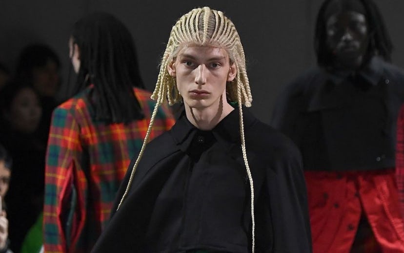 During Men's Fashion Week in Paris on Friday, Comme Des Garçons sent white models wearing lace-front cornrow wigs down the runway as a part of its Fall 2020 show. As photos from the event have trickled in, Fashion Twitter has called out the brand for cultural appropriation, and has gone so far as to note the haphazard way the wigs were placed on the models.