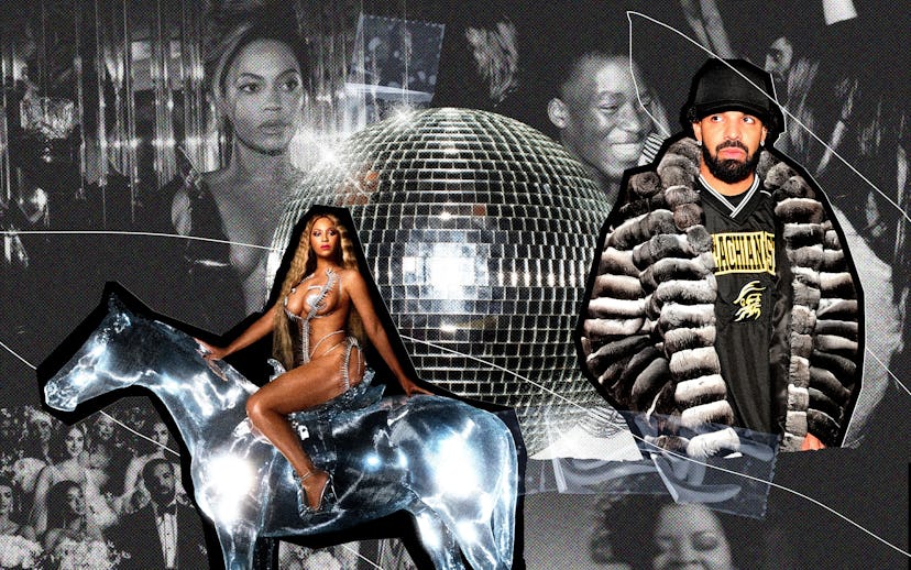 A month before Beyoncé was running drills on the dance floor, Drake was having his own house music moment. On his June surprise album, Honestly, Nevermind, the most poignant moments are when he’s at war with time. On “Falling Back,” he’s resistant to time’s obligation to heal and transform heartbreak’s gashes into new skin or scars. “Time is just killing,” he sings numbly, expressing how wasted time can feel like staring at an open wound, waiting for it to close. “Time isn’t healing, wait/ Time is revealing.” “Falling Back” nearly reaches five minutes, built on subtle metallic clinks, spacey synths, underwhelming high hats, and a blunt 119 BPM. It’s like spa music for the dance floor — supple, hypnotic, and sensual. Alongside these vortex-opening rhythms, Drake is trying to find his emotional pace.