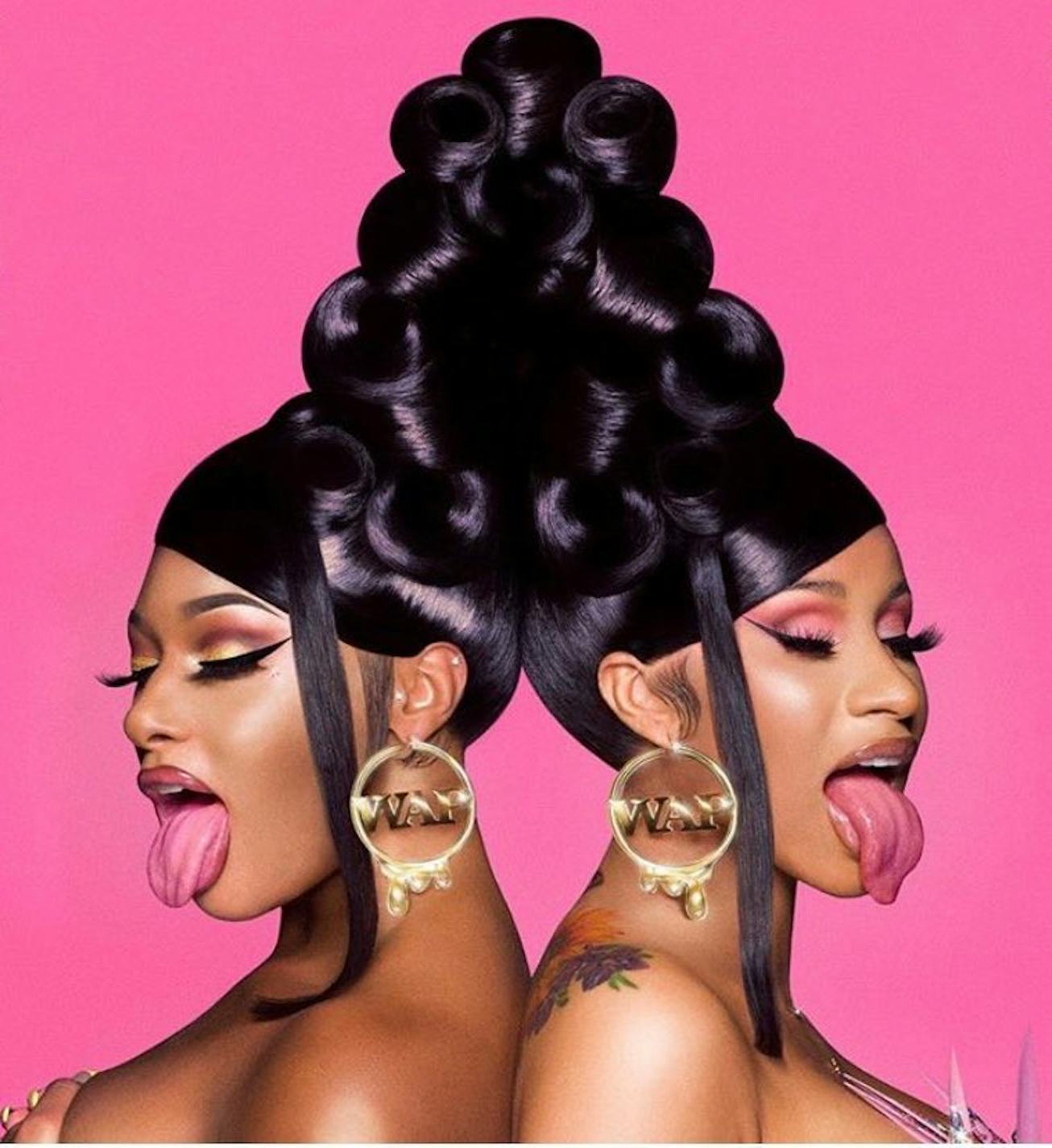 The stunning single cover places the two rap queens against a striking hot pink background, where they stand side-by-side, looking out in opposite directions, their respective wigs coiling together to form one giant, radiant beehive of ultra-sheened hair. They wear matching WAP earrings and, as is their wont, both women have their tongues playfully stuck out. It’s an incredible and cheeky depiction of two Black women at the height of their game that also references one of the best magazine covers of the year. Of course Twitter users are already wondering, "Can album art win a Grammy cause damn."