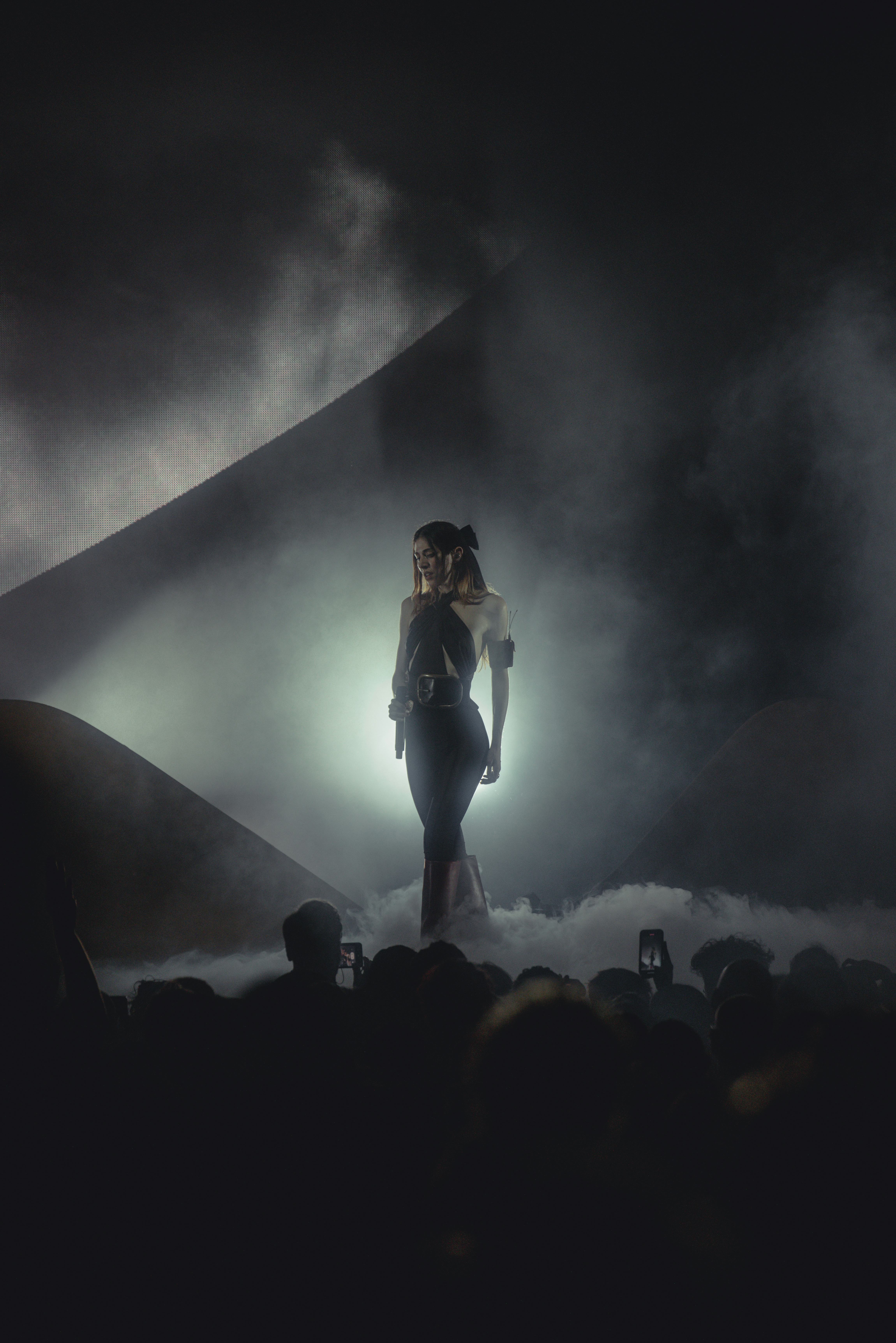 My favorite song is “Crude Drawing of an Angel.” That's the one with the black, kind of cross-like stars that hang down and have these shadow effects going with them, and then they light on fire at the end. That song in particular really comes alive when you see it live. It's become one of my favorite songs on the album because I love it so much live. [It’s] just video content, and our video content guy is actually really amazing at making that stuff look really real. He's someone that Caroline's worked with for a long time who did the Pang visuals as well. I remember I actually saw the Pang show and they had a fire effect in that. I was like, “Is that real? How did they do that?” I had to ask her team afterwards cause I literally thought it was real, and I obviously understand how these things work, but it still fooled me.