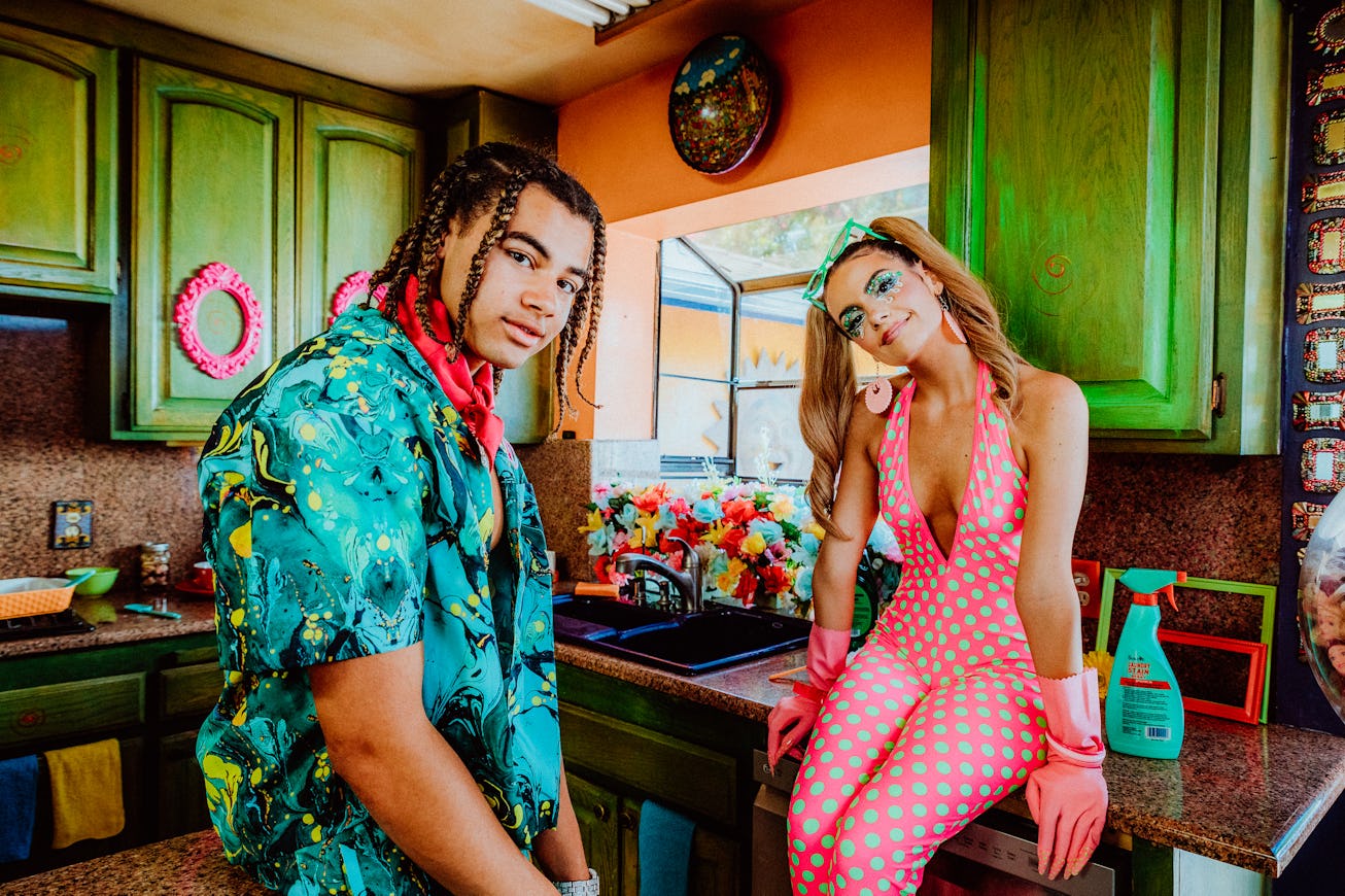 The Roxana Baldovin-directed visuals for the track are an eyeful — Collins and 24kGoldn play house in an oversized, colorful California dollhouse, interspersed with images of a little girl playing with literal Barbies. The message? "I wanted this song and video to execute the world that's inside of my head — somewhat similar to a weird vintage rom com where at first the drama of love is so toxic, passionate and thrilling but eventually my lover and I have a happy ending," Collins tells NYLON.