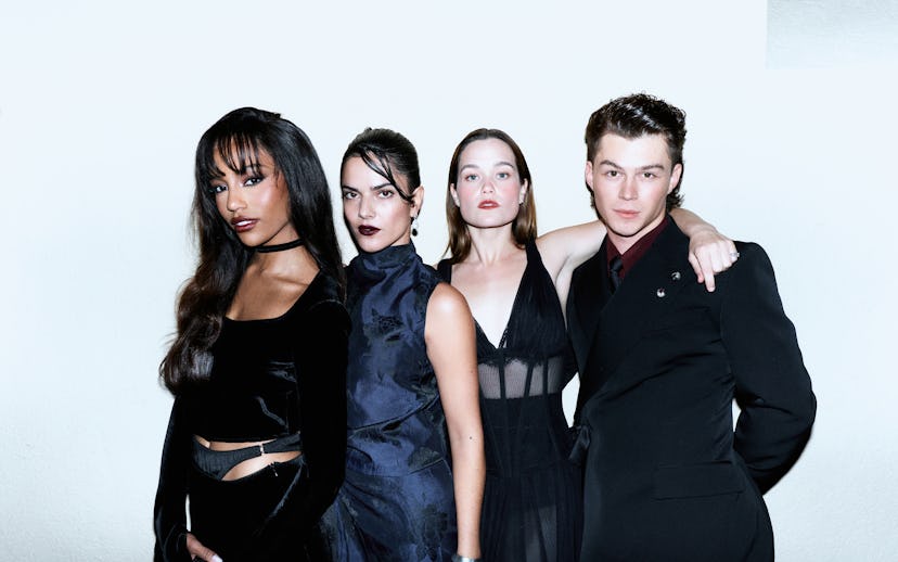 At the series' Nov. 19 premiere event in LA, the cast — dressed in on-theme black with some subtle lingerie detailing (and a less subtle hip-high slit) — stopped by the photo studio to sit for Myles Hendrik, the resulting images from which NYLON exclusively shares here. Cruel Intentions is available to stream on Nov. 21.