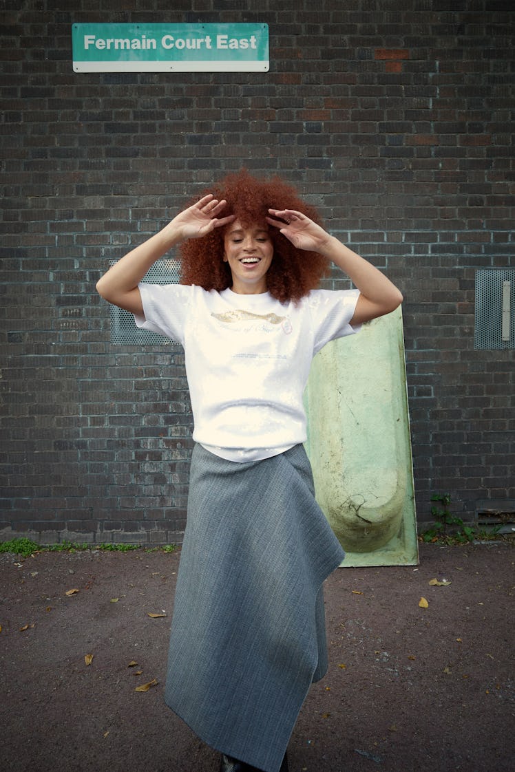 Modeling, it turned out, wasn’t for her either. Despite her striking auburn curls and made-for-a-closeup freckles, she was too anxious to handle the attention that comes with being photographed for a living. “I hated being on show,” she says. Disappearing into a character, though, was a very different proposition. When a 13-year-old Kellyman attended a casting session where she and her fellow models were asked to improv a classroom scene, something finally clicked. “I came out of the room absolutely ecstatic,” she recalls. “I was like, ‘That wasn’t the same as the modeling auditions. I want to do that.’” By 15, she had booked her first role as a series regular on Raised by Wolves, the British sitcom from Caitlin and Caroline Moran.