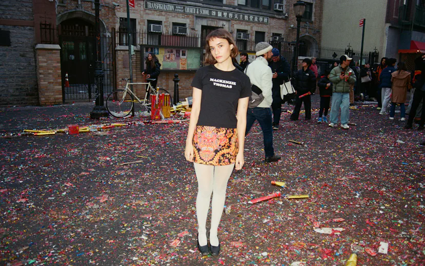 “I’ve had the urge to perform my whole life,” says Thomas. “I was really lonely as a younger person, and I had nobody to have inside jokes with, so I started having inside jokes with myself and posting them online. Now I have a bunch of inside jokes with people I’ll never know, and that’s such a blessing.” These include self-referential bits alluding to her fictional corporation, Mackenzie Thomas Industries; her love for Robert Pattinson; New Jersey state pride; and the term “playboy” to describe manipulative men she knows, folded back into her own canon in classic e-girl form.