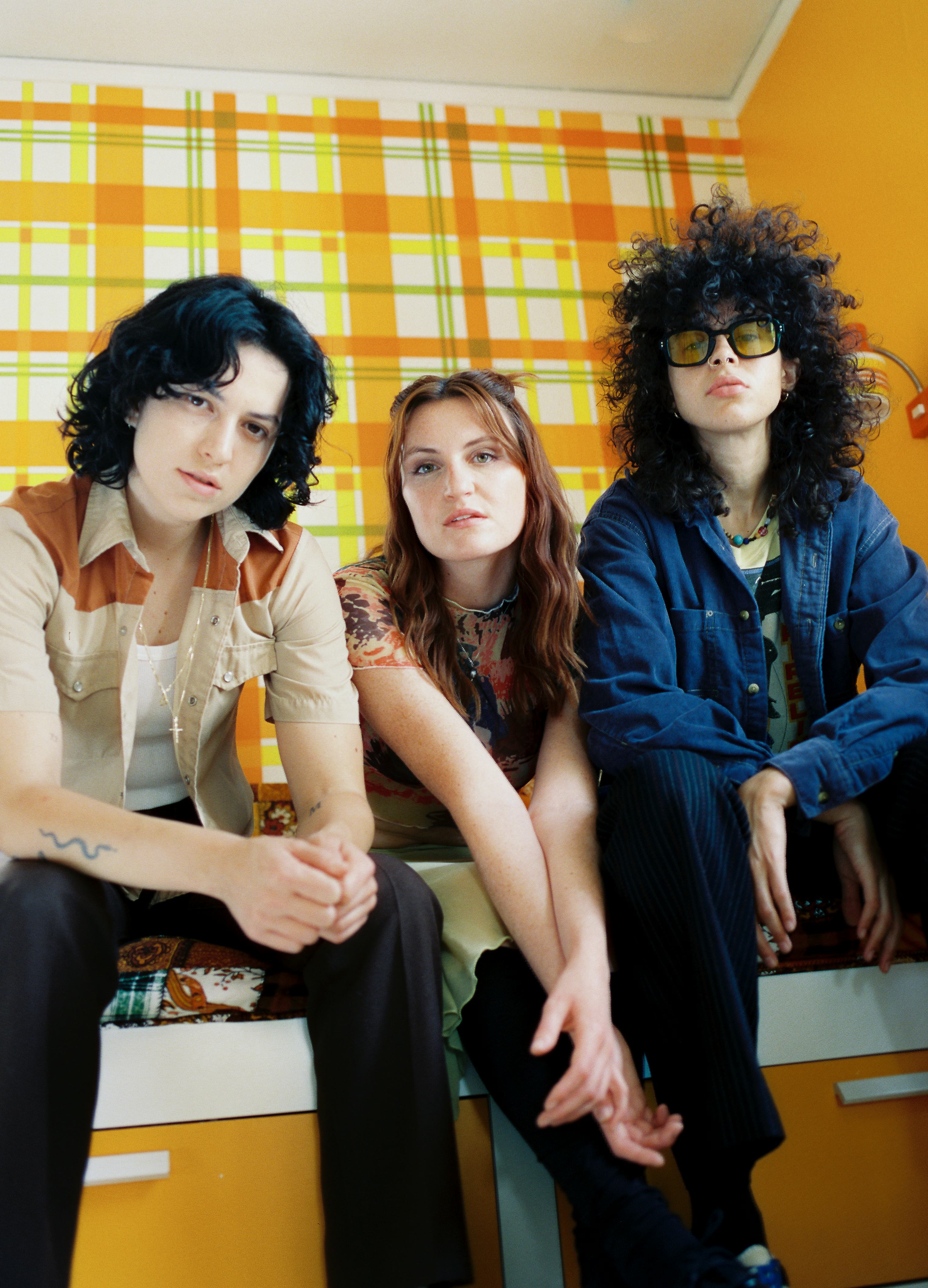 MUNA recently signed with Phoebe Bridgers’ Saddest Factory Records. One small step for band, one big step for gay-kind. The relationship was kismet. Though unplanned at the time when Bridgers kicked off the label (MUNA was already signed to RCA), they saw the vision even then. After a few DMs back and forth and a casual run-in, Bridgers told the band, “You guys would be the dream act to be able to sign.” And that? It’s the power of manifestation. Soon after, MUNA was dropped from RCA, and while they assure me there’s no bad blood, it’s easy to see how symbiotic this newfound partnership is.
