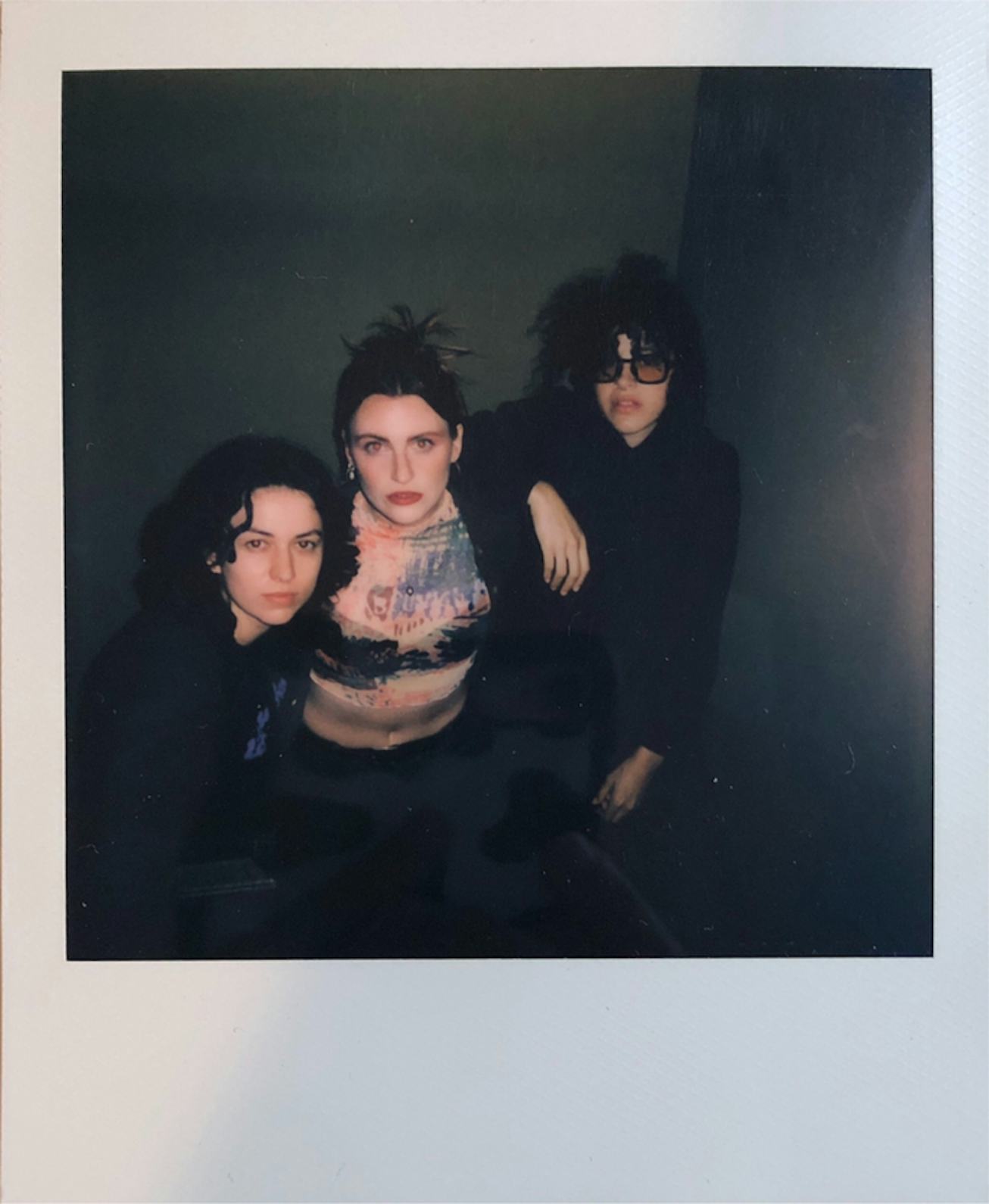 There’s still three hours before MUNA’s set to hit the stage, but a healthy line stretching down the street and around the corner has already formed in front of New York’s Bowery Ballroom. Backstage in front of the green room (a door painted with a lopsided star at the end of a short all-brown corridor), the three members of the Los Angeles pop band, Katie Gavin, Naomi McPherson, and Josette Maskin, pose tiredly for polaroids, wordlessly shifting positions before each shot — Gavin in the middle, then McPherson, and then maybe a shot on the ladder in the corner — like the pros they are at getting their photo taken.