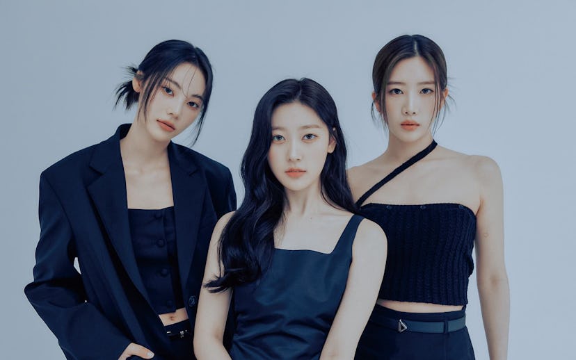 On a Thursday ahead of the release, Odd Eye Circle joins NYLON on a Zoom call from Seoul. Through the screen, their jet black hair contrasts with pristine white T-shirts, but that’s as far as the similarities between the three women go. Eldest member JinSoul, 26, has attentive eyes and a deep voice, with which she relays carefully thought out ideas. Choerry, the youngest at 22, is the embodiment of the “^_^” emoticon, and playfully smiles throughout the interview. Kim Lip, 24, is lofty and assertive, inspiring a confident aura to the group.