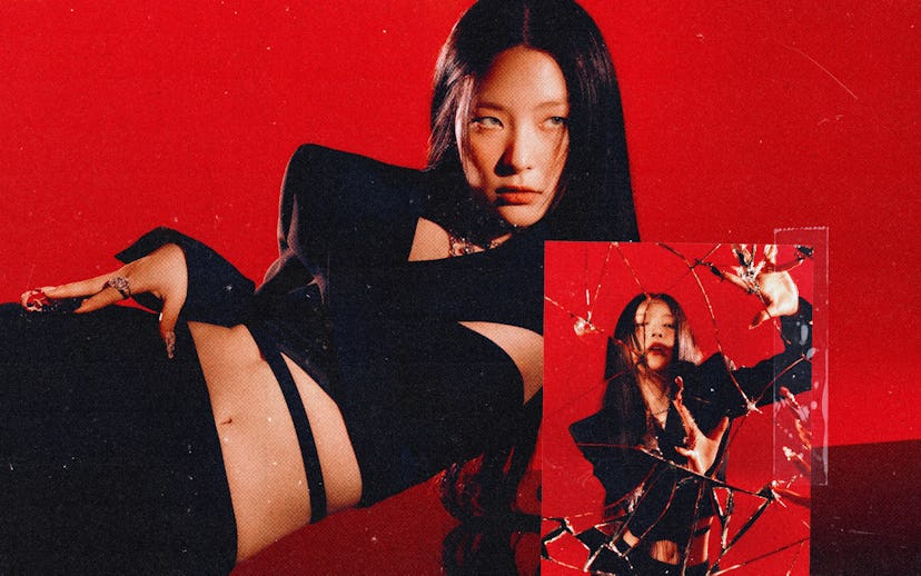 During one of the many company meetings in preparation for her solo debut, Seulgi reflected offhandedly: “Good and evil people are not clearly distinguished. Good and evil coexist within one person.” This thought ended up framing the entirety of her debut EP, 28 Reasons, out now. It appears on the cover of all its versions like a subtitle and defines the way she portrays Snow White and Grimhilde (the Evil Queen) in its teaser images, looking heavenly yet diabolical at the same time. It serves as the central theme of the cohesive six-track collection — a register of Seulgi’s best skills as she navigates dark and tempting narratives.