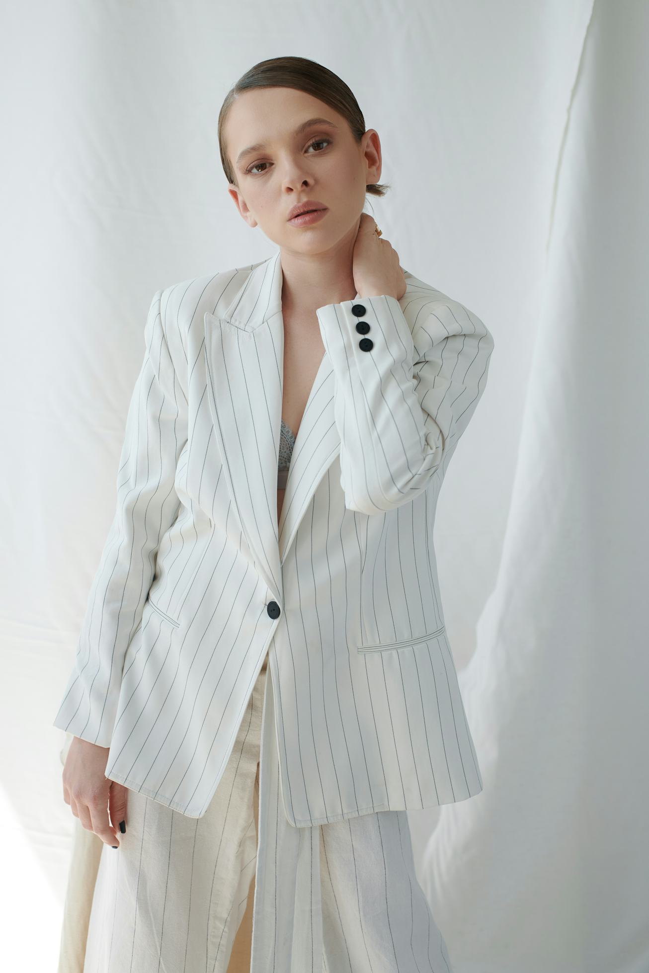 “I like to watch shows that are different from my world and still see myself in them,” Haas says. “I think that’s part of why Unorthodox got so much love. People are curious to see something different than them, and are surprised that they can relate.” Born and raised in Israel, Haas has been acting since the age of 14 when she began appearing in local theater. In 2014, she appeared in her first film role as the lead in Princess, for which she was nominated for Best Leading Actress at the Israeli Academy Awards. She made her Hollywood debut in Natalie Portman’s A Tale of Love and Darkness and starred opposite Jessica Chastain in The Zookeeper’s Wife, but Unorthodox is her true breakout role, introducing her enormous talent to Netflix’s far-reaching audience. Haas was supposed to be in Los Angeles to promote the series before COVID-19 shut the world down, but the show became a hit nonetheless. “I’m a hugger, so I miss that in my life,” she says. “But [being home] gives you time to breathe and process everything.”