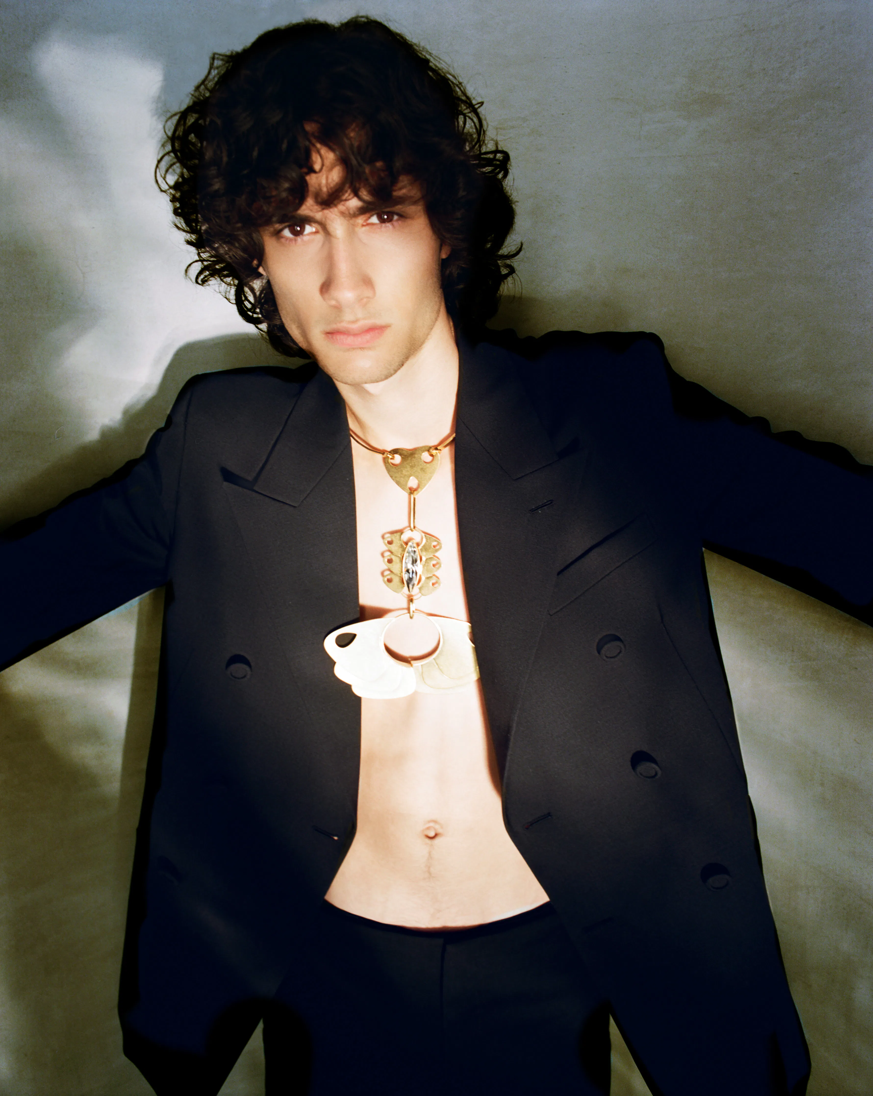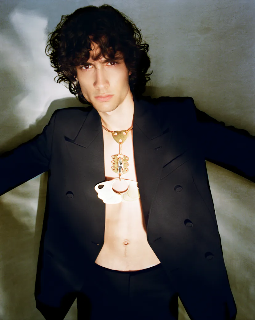 Indeed: Few artists have the world in the cup of their hands right now like Sombr, the 20-year-old rock star who’s got more passport stamps than he can comprehend and still squares off with his laces; who’s got the lanky frame and messy curls of a member of The Strokes circa 2001 but also radio hits as irresistible as any pop girlie’s; who will sing songs of devastating heartbreak while dressed, usually sans shirt, in a sparkling suit that even John Travolta in Saturday Night Fever might consider too much. And he’s loving it. “This feels like a simulation,” he says, pausing between his words like he’s struggling to find the right ones. “Even over a year ago, I was a signed artist, but no one knew who I was. Being a small fish in that huge pool, even then, it felt impossible — and you see everyone in L.A. trying to do it. I was like, ‘Bro, I’m never going to have a hit.’”