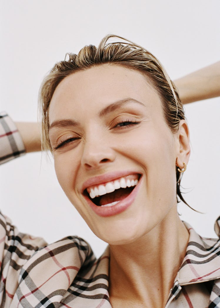Despite her clear and early ambition to be a performer — in addition to acting jobs like Netflix’s Sex/Life and Syfy’s Krypton, Day has also appeared in music videos from Arctic Monkeys and 5 Seconds of Summer — her interests extend well beyond being in front of the camera. She also plays drums and guitar, trains in Muay Thai, writes poetry, hosts the lifestyle podcast Girls Next Door with her friend and influencer Francesca Allen, co-founded the vegan food brand PlantPunk, and is developing an under-wraps fashion tech company. If that sounds like… a lot, well, that’s the former athlete in her.