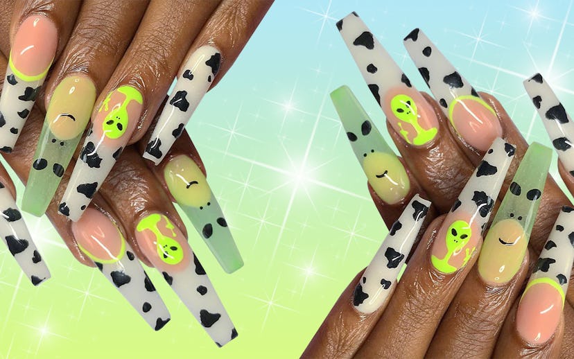 Other notable sets were created by nail techs I'm obsessed with, from a cow-alien moment to a sea glass manicure I'm sure will be everywhere come spring.