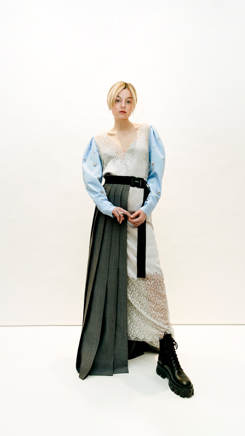 Wearing Saint Laurent by Anthony Vaccarello.