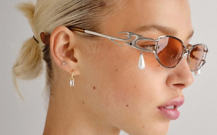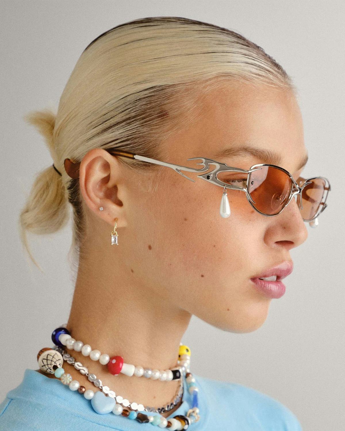 Give your frames an unconventional upgrade and a piercing all in one with a cheeky charm. Whimsical options include Kimhekim’s pearl teardrop and Justine Clenquet’s studded pair.