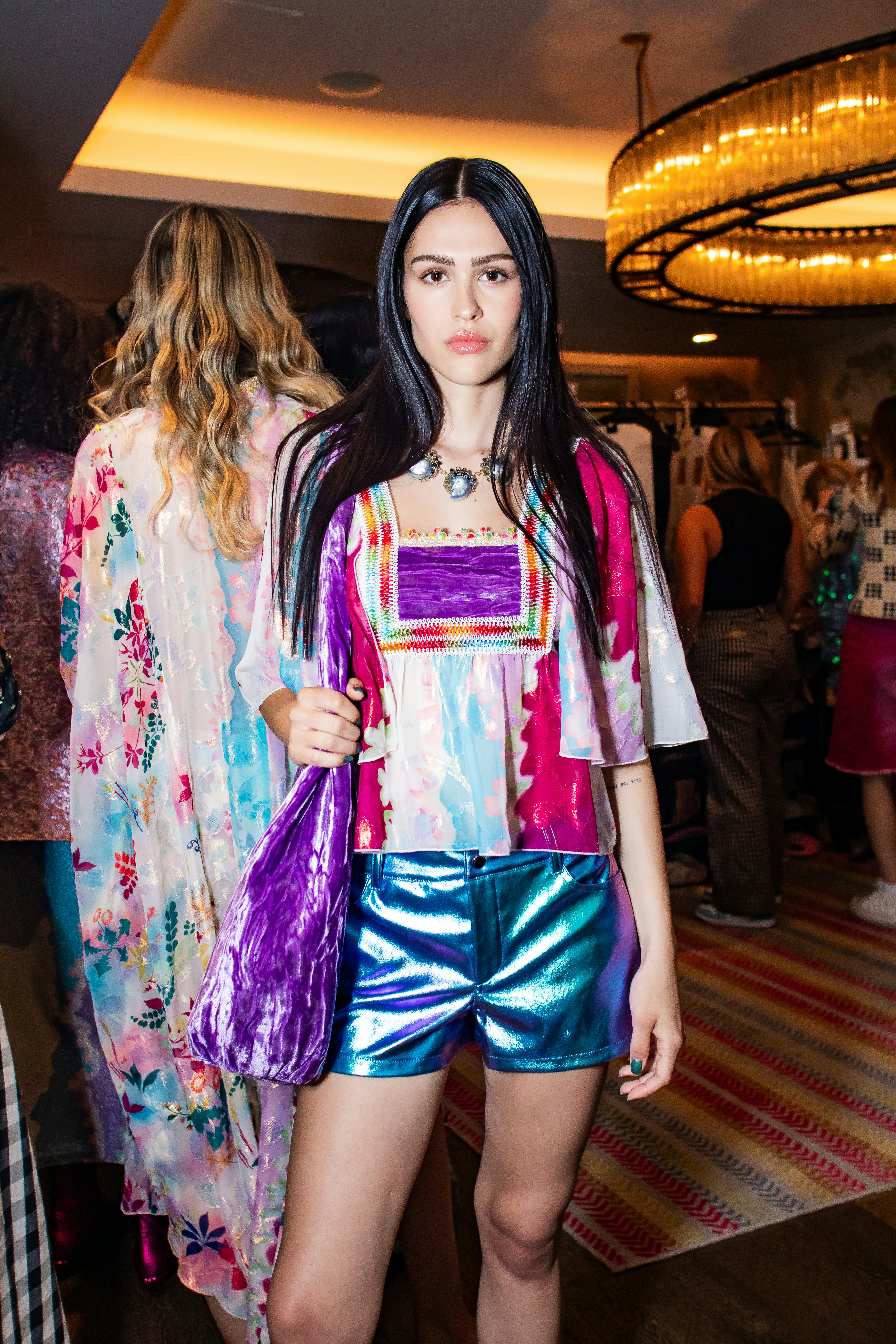 Anna Sui showed her collection at one of New York’s hidden gems: the Crosby Street Hotel’s screening room. After descending the lobby stairs, guests were able to pick up some candy and popcorn before heading into the miniature movie theater.
