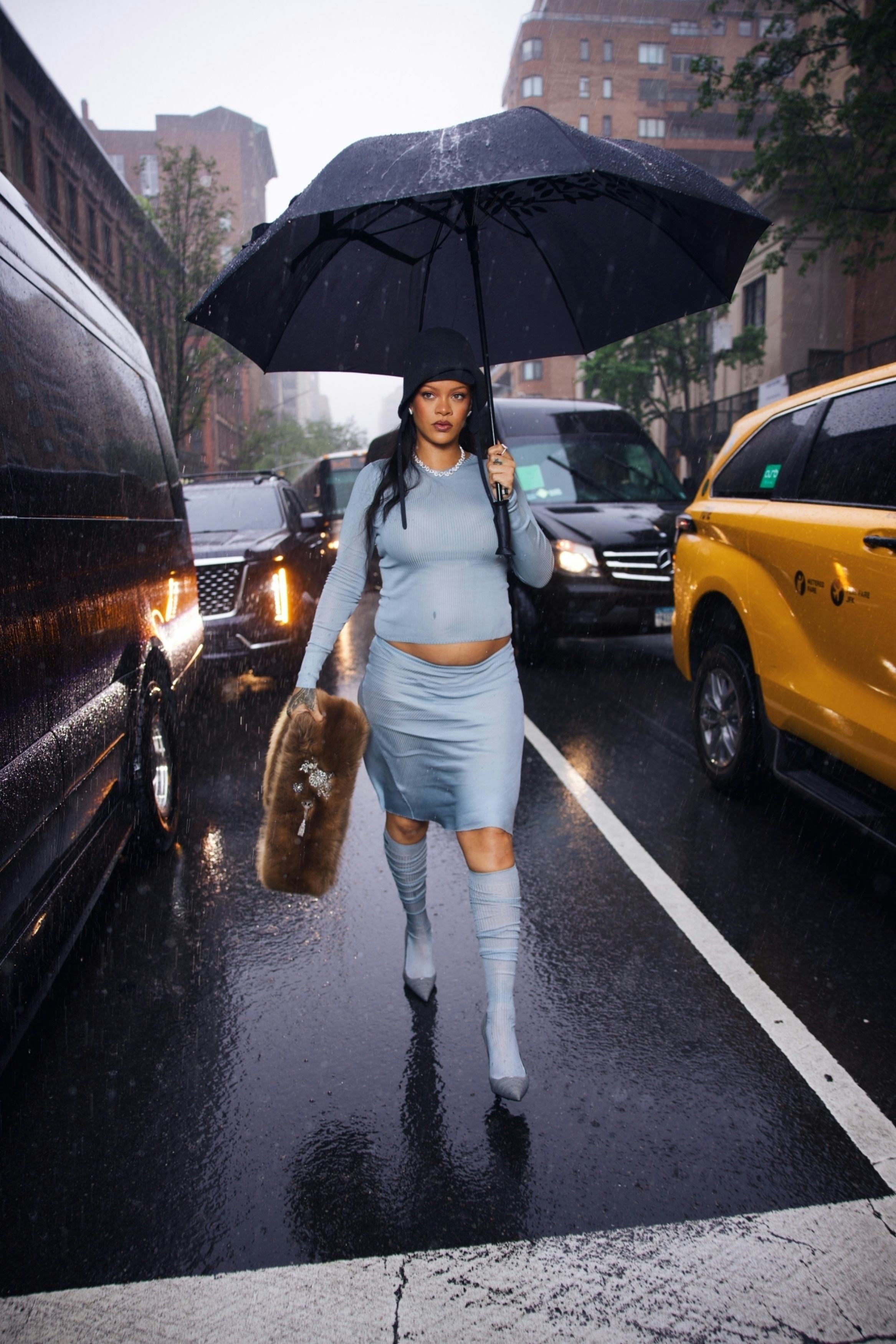 Who could forget the first photoshoot she did with A$AP Rocky on the streets of Harlem to announce her first pregnancy? The only way to top that is to, on the day of the Met Gala, arrive to your hotel in Miu Miu with your belly exposed, a cloche hat and faux-fur stole in tow. She stole the night before even hitting the red carpet.