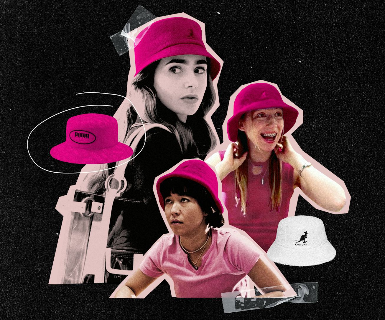 Plus, characters on what seems like every other show you're streaming are popping up in one, like best-dressed D.J. Flynn (Jadah Marie) in oversize leopard faux fur in Julie and the Phantoms and Emily in Paris' titular Chicagoan transplant (Lily Collins). The latter even receives the unsolicited nickname "Bucket Hat" for her collection of Kangols, costume designed and styled by Patricia Field, who's been pioneering the fashion landscape and New York club scene during all of the aforementioned headwear spikes.