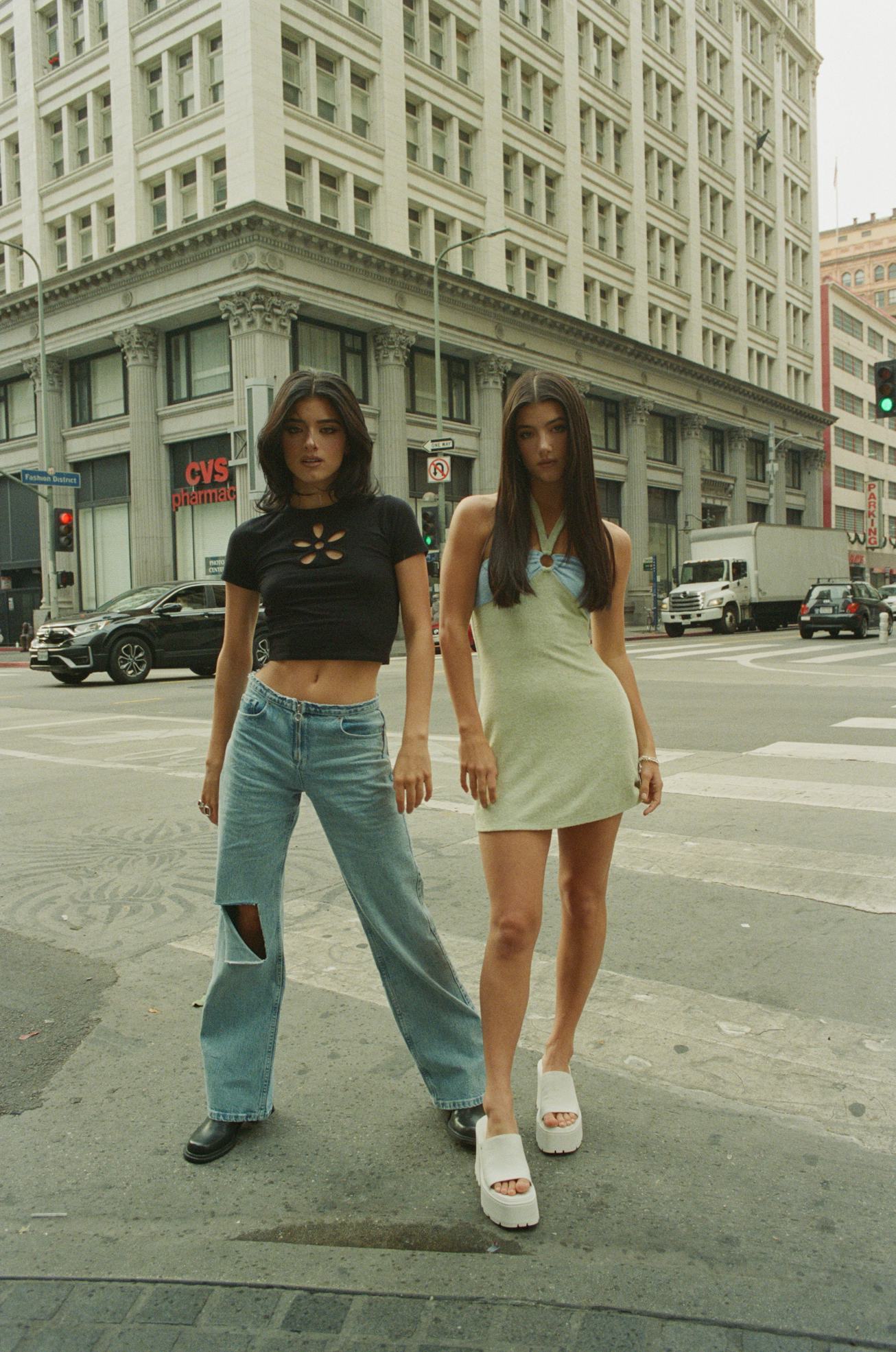 CHARLI: We are so excited about how Social Tourist is evolving and we couldn’t have asked for a better team to help us with all of our ideas. When we first started this line, I don’t think we realized all of the amazing products we could create together. We started with merch because it was what we knew best (who doesn’t love sweatsuits?) and then we got an amazing response, so it inspired us to come up with different ideas and styles. Dixie and I really wanted to be involved in the creative process as much as we could be, so we’ve been making a conscious effort to be involved in all of the product and creative meetings so we are the ones picking out all of the fabrics, colors, etc. We’ve been continuously learning about what fabrics/silhouettes/colors look good on different body types, skin colors, etc. It’s been amazing to have that knowledge to grow this brand.