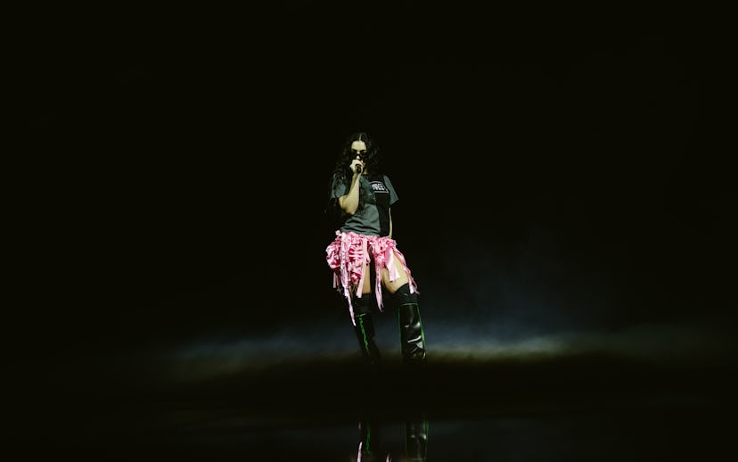 She wore the green-tinted version for her final Brat headlining show in Glasgow, which the brand created custom for her in partnership with her stylist, Chris Horan. The boot, as shown in the brand’s process video, is sanded down from its all-black glory to reveal sickly green raw edges. It’s the most of the album art’s color Charli’s worn all year, and it’s also a low-stakes way to get some “merch” that isn’t a “365 Partygirl” tee or a Nalgene water bottle.