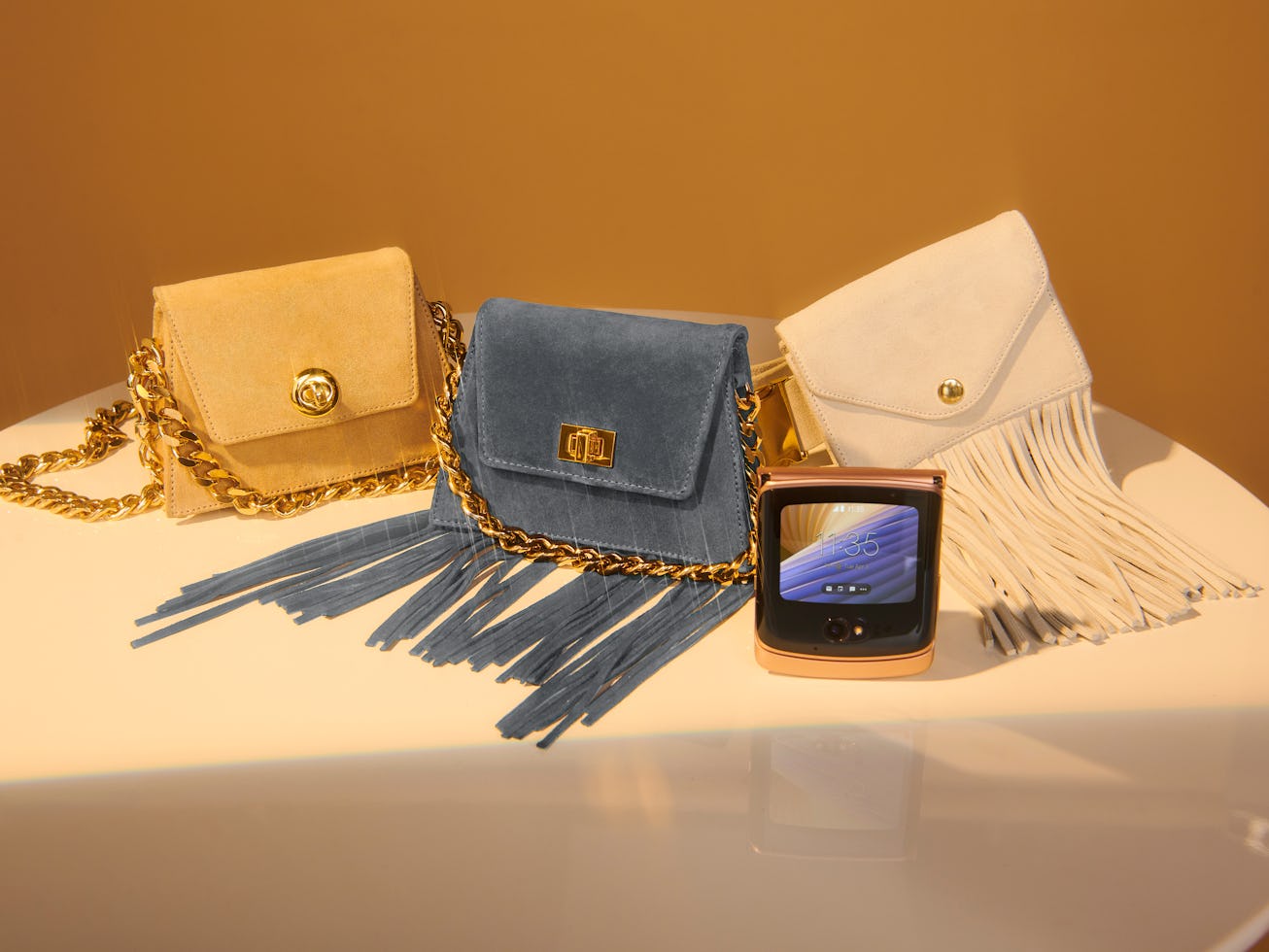 “I feel like I’d had such a long relationship with the Razr phone, because I had one when I was a teenager — it was like my favorite thing,” he said. “And now it’s so cool, having that updated Razr, because it’s so fabulous, with a bendy screen and so on… it just felt like me, as a brand.”