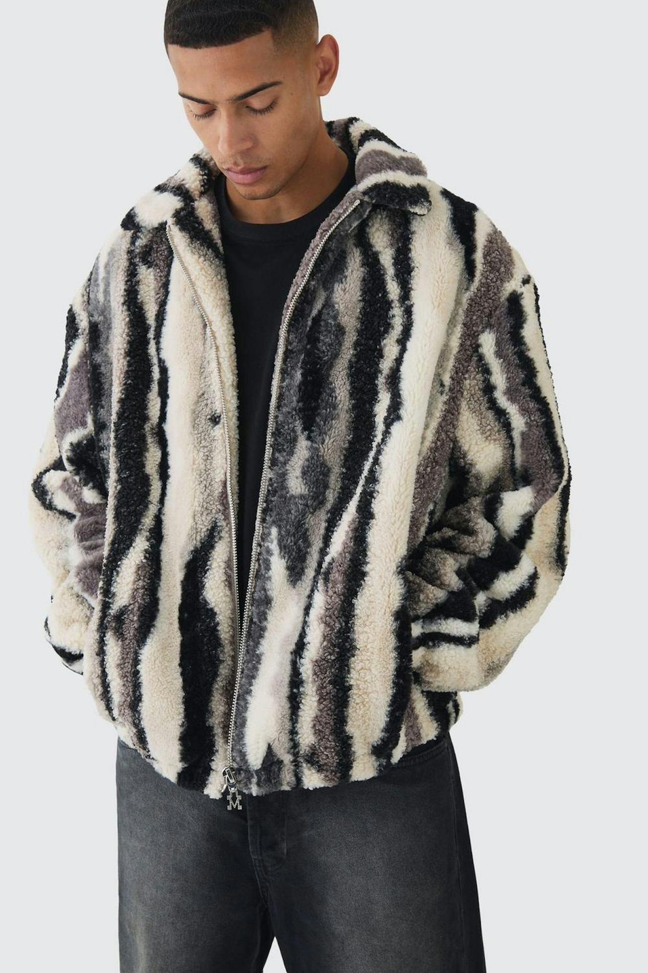 This oversized jacket offers a unique, cozy texture and pattern but can operate as a neutral within your wardrobe.