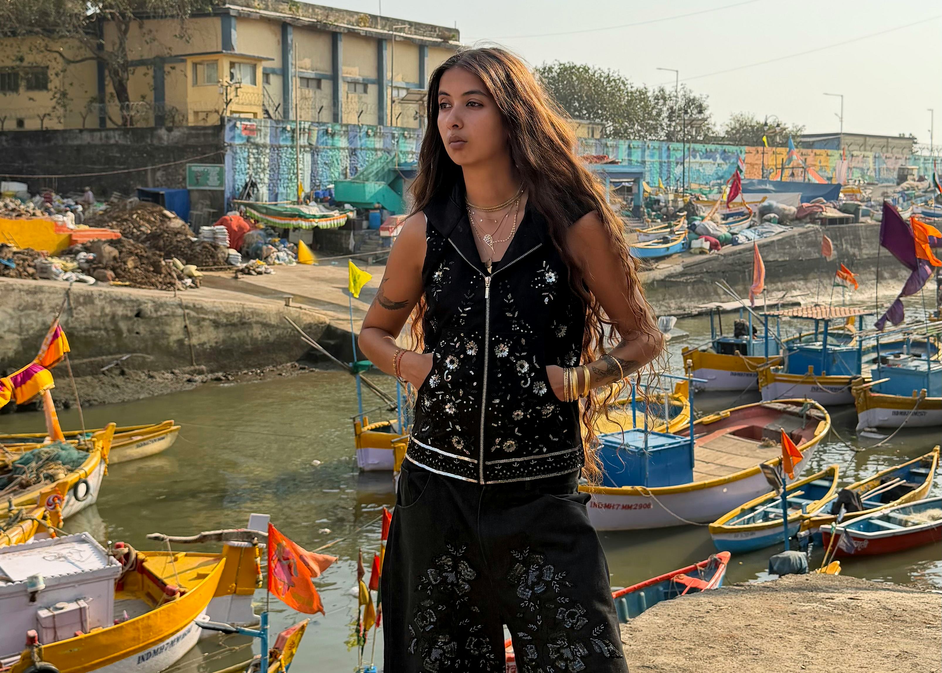 If you’ve spent any time on TikTok or Reels in the past month, you’ve likely come across the 25-year old designer. Her waist-length raven locks, a rotation of gloriously embellished fits, and an enviable irreverent swag carry her through the streets of Mumbai by foot, rickshaw, or horseback. Across dozens of now-viral clips, the formula is instantly recognizable. Set to Frank Ocean’s “Nights,” Joukani dines on local fare, banters with street vendors, and jaunts through the city in a fit of equal parts Western streetwear and Eastern tailoring. What begins as a casual day-in-the-life format (part outfit diary, part city stroll)has quickly snowballed into something larger: a viral blueprint other creators are now replicating around the world for their own shot at Joukani-level traction.