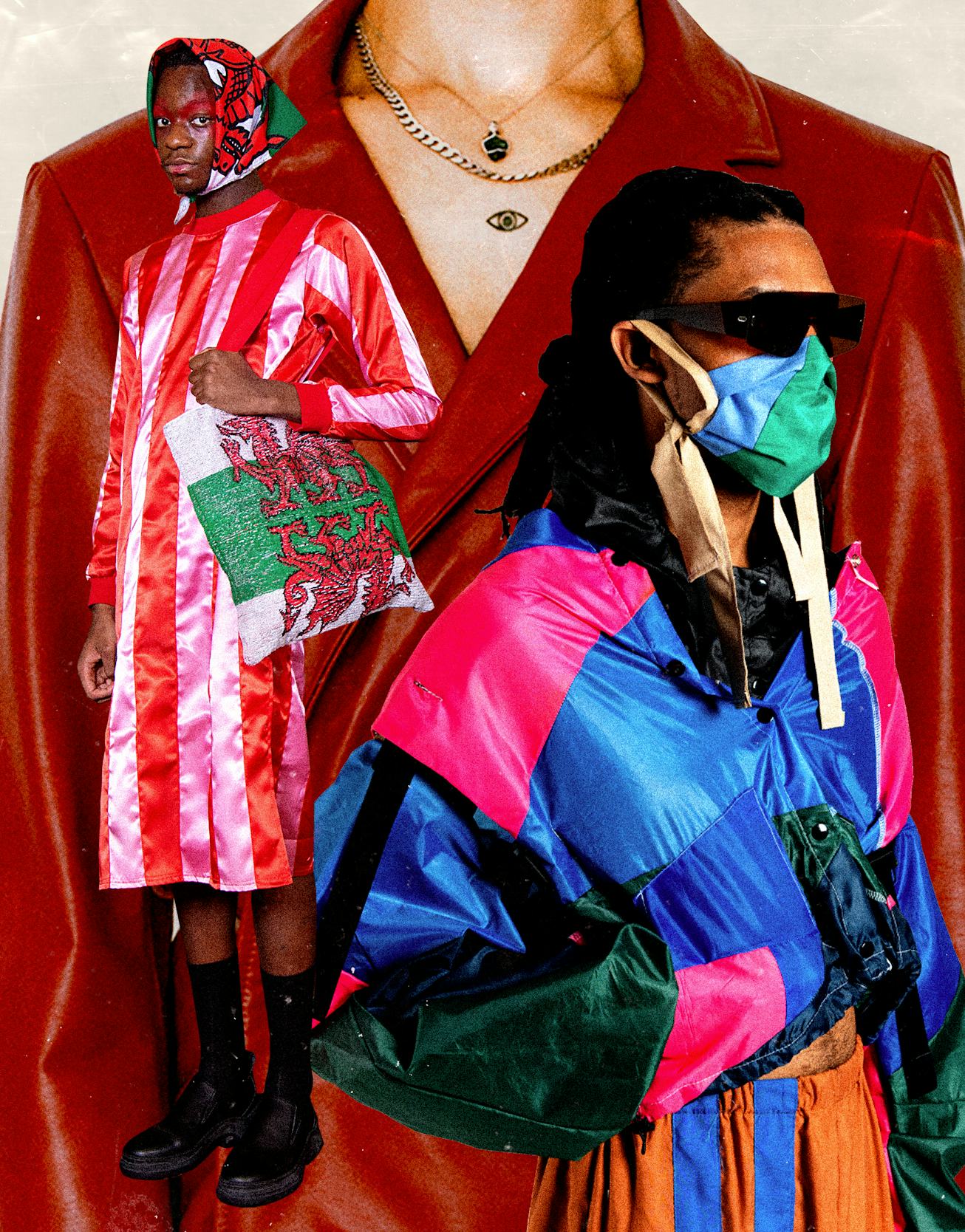 That same magpie approach similarly serves Miles George Daniel. The emerging designer, who will make his London Fashion Week debut this season, tasked himself with making a zero-waste collection for his graduate collection last year. Having already been focused on sustainability, he decided to ask himself: “How can I take it to the next step?” And explains: “Realizing that I can use any fabric, I can unpick thread from a T-shirt or any garment and then re-use that for my next project.” When lockdown hit, he was working in his bedroom rather than a studio and it made sense to go about fully exploring the answer to his initial question. “It made everything so much stronger,” he says. “I started using cardboard scraps and wires, and going through my whole wardrobe, the garments I don’t wear anymore, and repurposing them. It was very liberating.” The result is impactful: sculpturesque, layered, and notably appealing. A look can be based entirely around one object he’s found.